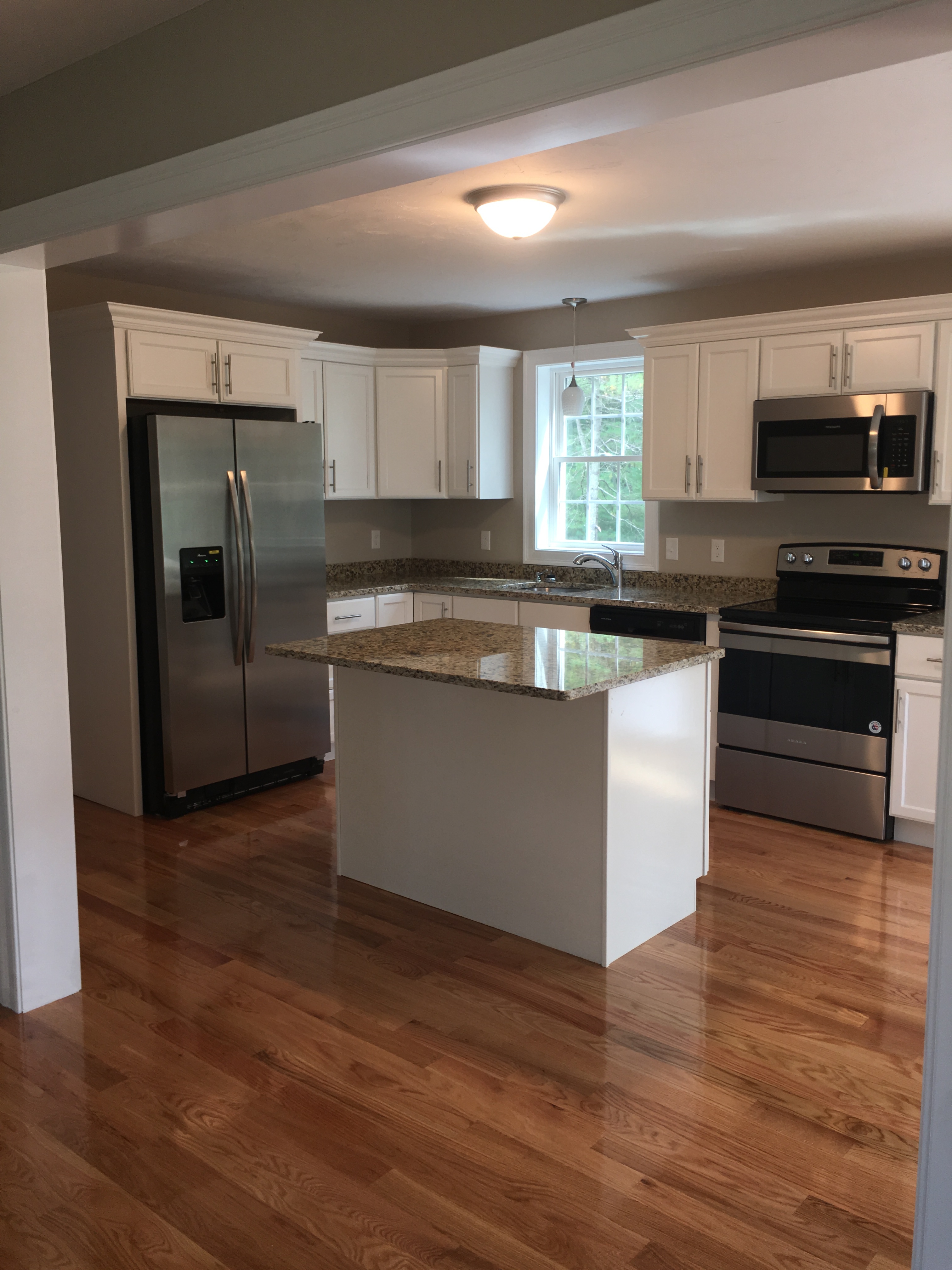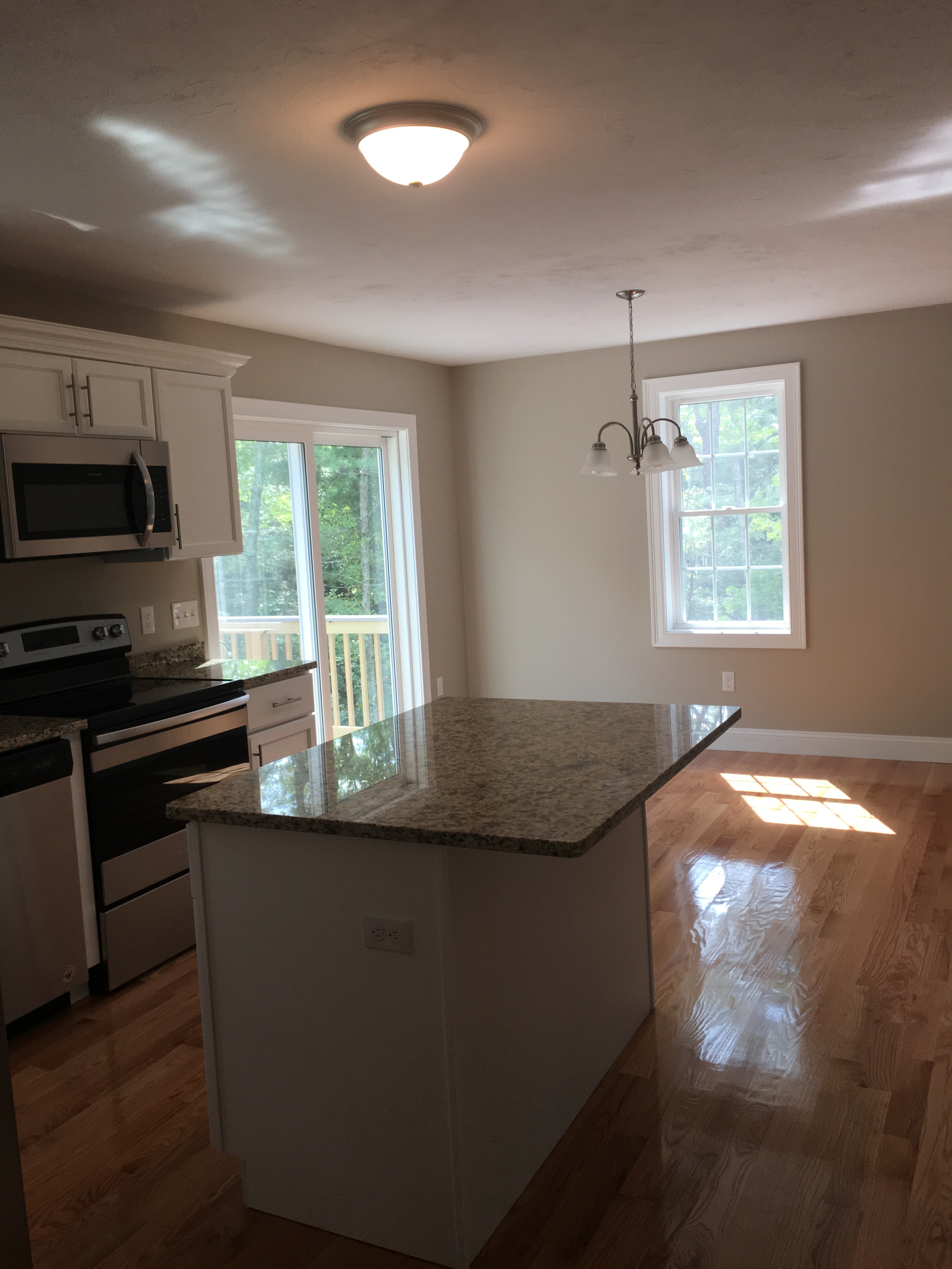 Brand New Colonial Near Highway . Home boasts Open Floor Plan Ist Level has Kitchen with Dining area overlooking back yard then opens to Spacious living room with Fireplace down the hall to a office/playroom/extra dining room/ craft room .Upstairs has large master bedroom with 2 walk in closets and a full master bath then second bedroom is also very spacious and a 3rd average size bedroom . This Home has a lot to offer very private sits back off road and back yard is spacious with patio.