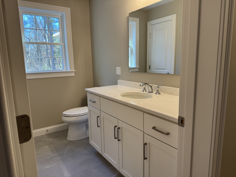 New home with very rare retreat style lot with only 3 homes on a long privately maintained driveway. This home has three bedrooms, three baths with an open floor plan and a 2 car under garage. Modern white kitchen with center island with overhang, recessed lighting, hardwood floors, tile bathrooms. The open living room, kitchen concept has a nice gas fireplace also to enjoy. Dining room/office/playroom has glass doors. There is great closet space throughout the house. Upstairs is three carpeted bedrooms with a master suite with walk-in closets and a master bathroom. The home also has a walkout basement with an access door and window to bring in light. This is a great area for future finished space. Great private setting- retreat style lot – book your showing today! Plot plan attached.Taxes not yet assessed. Private road shared between three new construction homes. Property has an access and utility easement for the power company and a driveway easement.